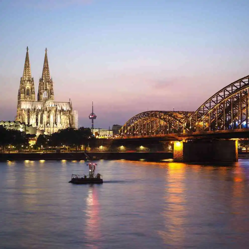 Puente Hohenzollern: Conocido por sus miles de candados del amor, este puente ofrece una de las mejores vistas de la catedral, especialmente al atardecer.